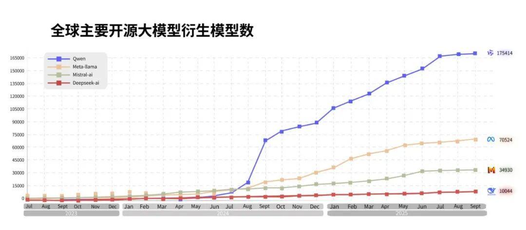 截至目前,Qwen系列衍生模型数量已突破17万个,形成全球第一的AI开源模型生态;在全球最大AI开源社区Hugging Face公布的模型趋势榜中,通义千问家族共有7款模型跻身全球前十,几乎实现「屠榜」。